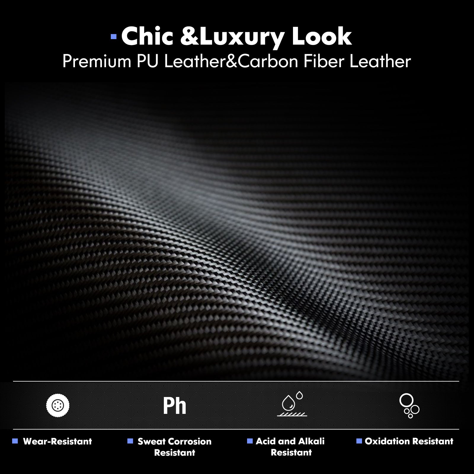 Premium PU Leather: Sweat-proof and soft-touch, with 3D carbon accents for a sleek, modern look.